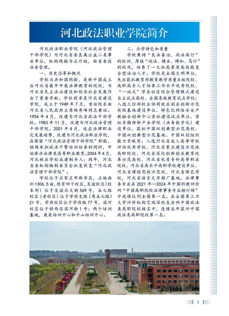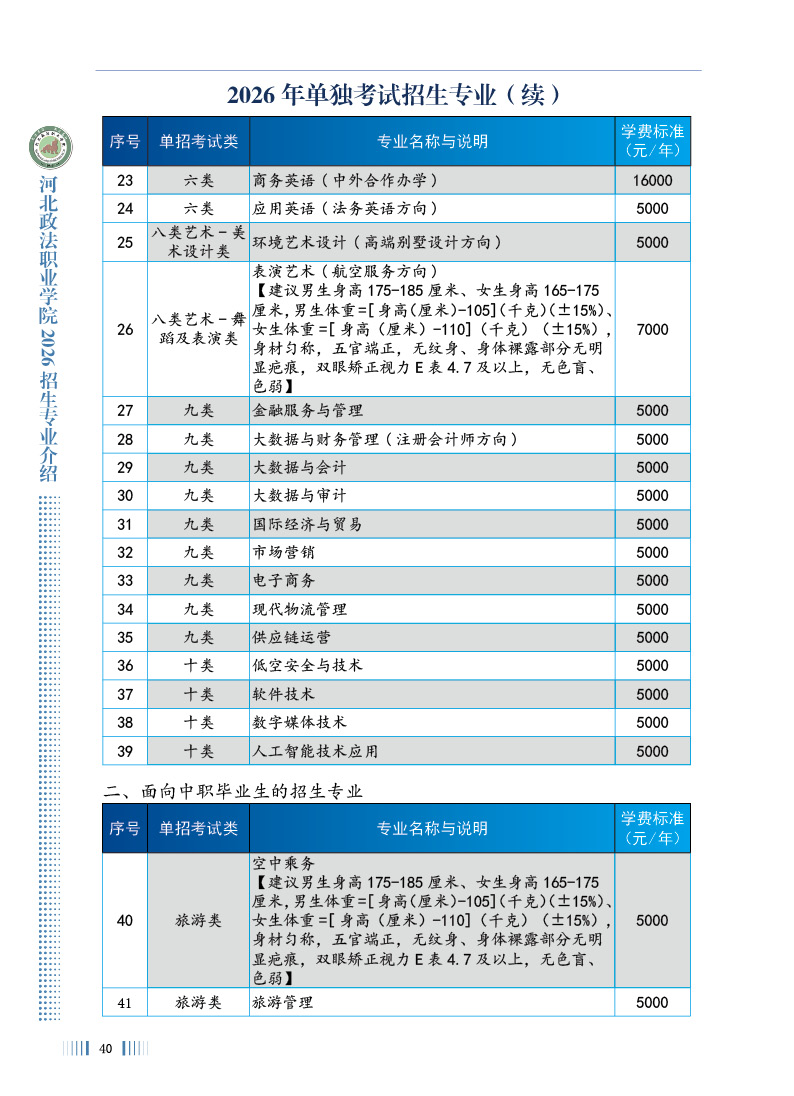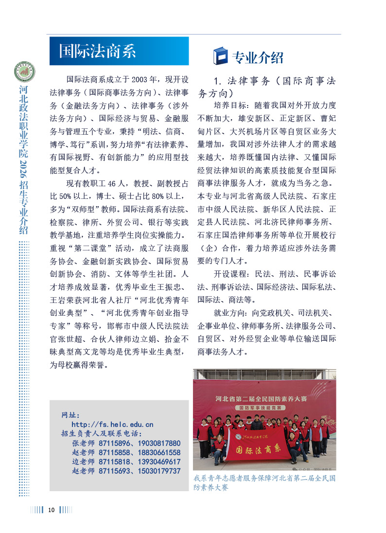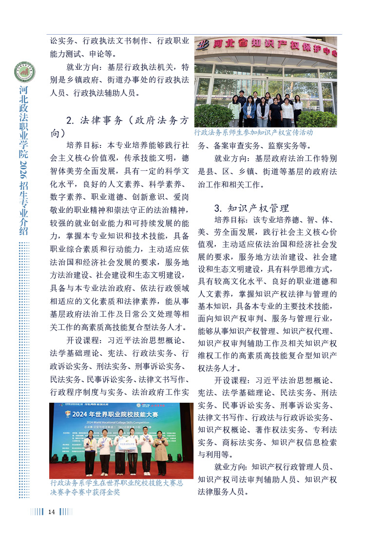 河北政法职业学院2026年招生专业介绍