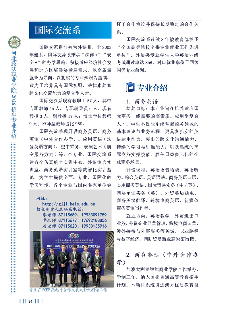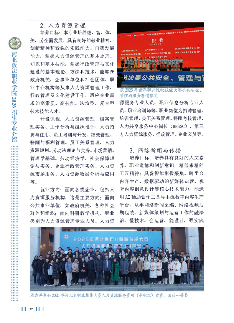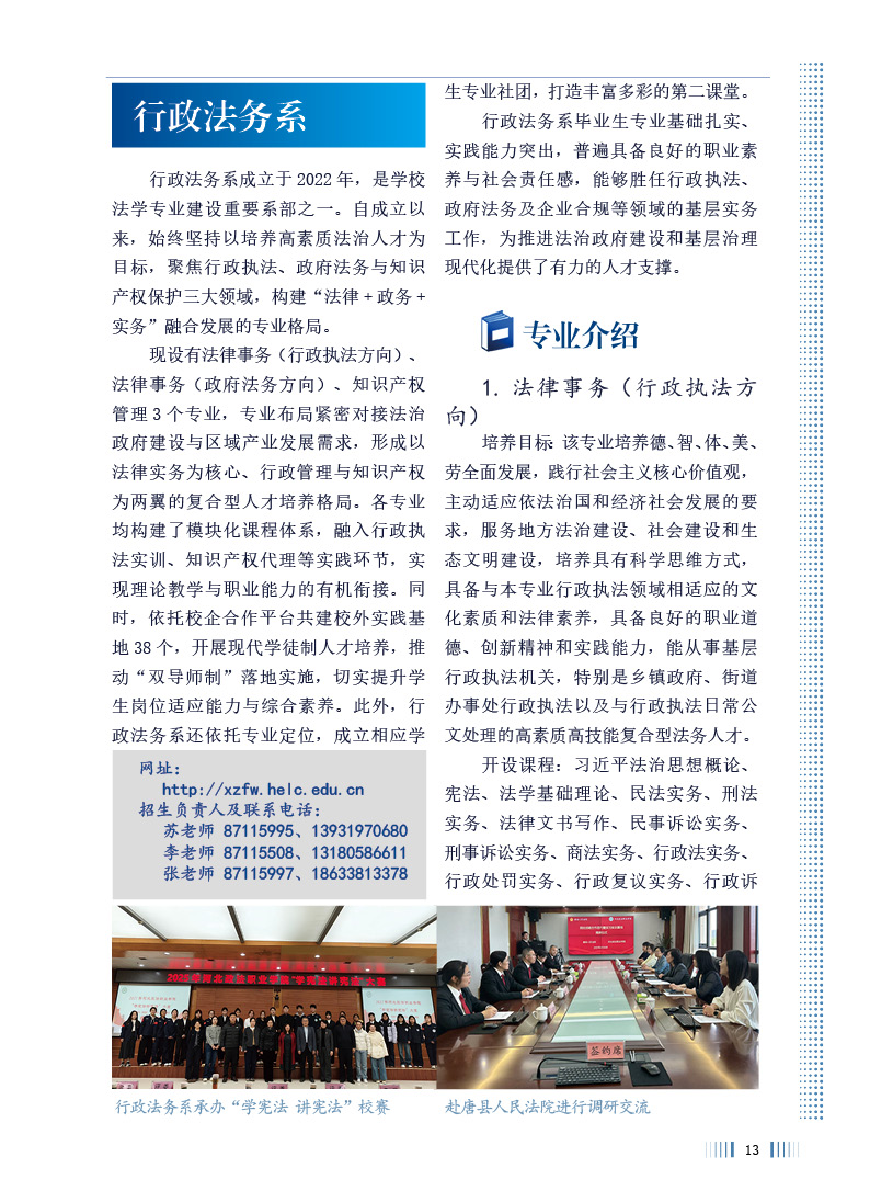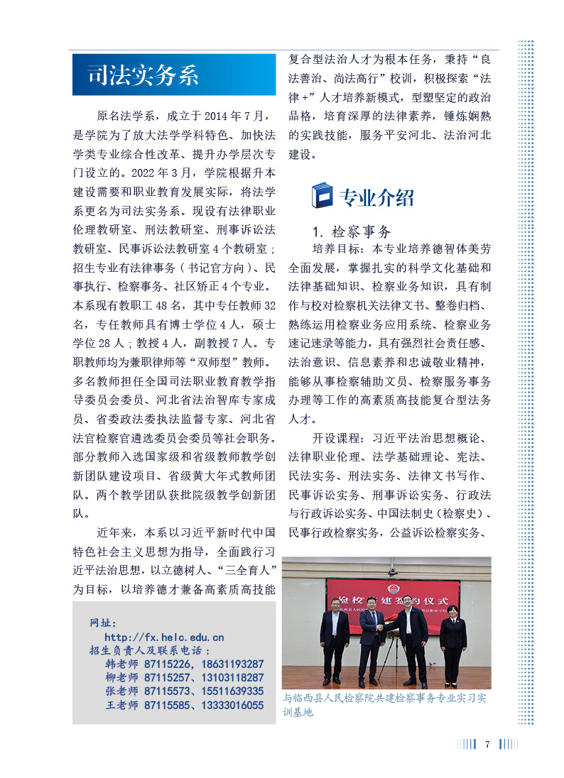 河北政法职业学院2026年招生专业介绍